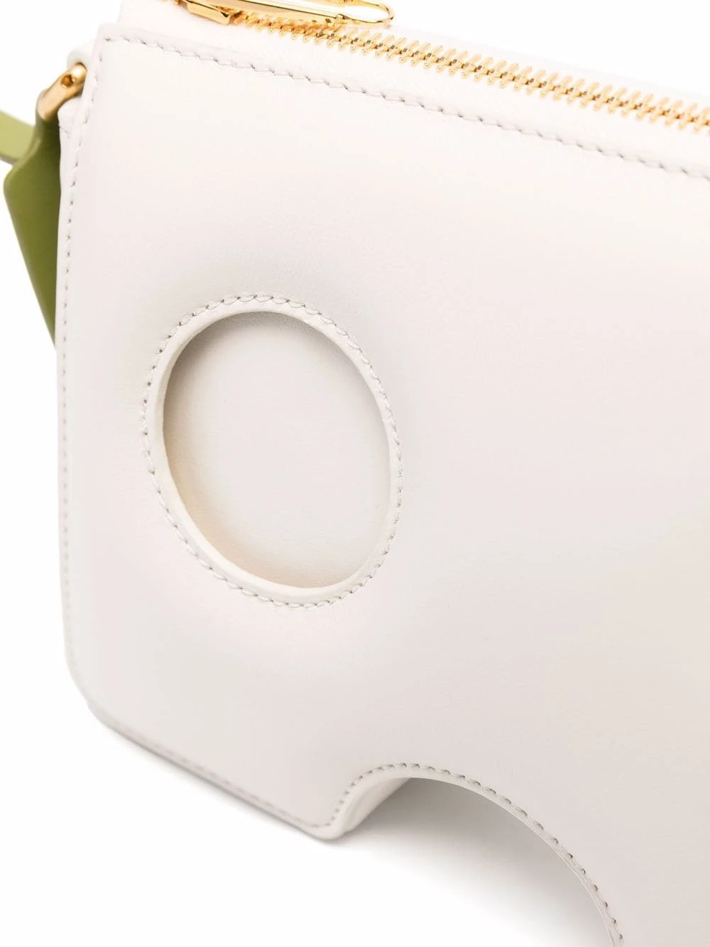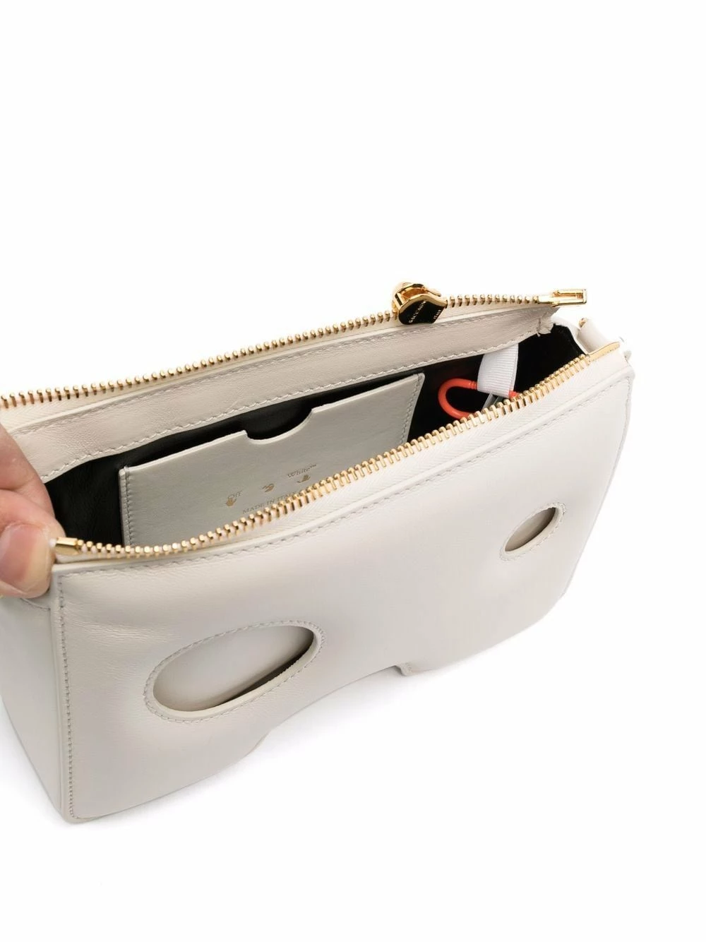 Signature Meteor cut-out detailing punctuates the Burrow-15 bag. Accented with gold-tone hardware, its deconstructed leather design is complemented by a Zip Tie tag – one of Off-Whiteβs most iconic motifs.