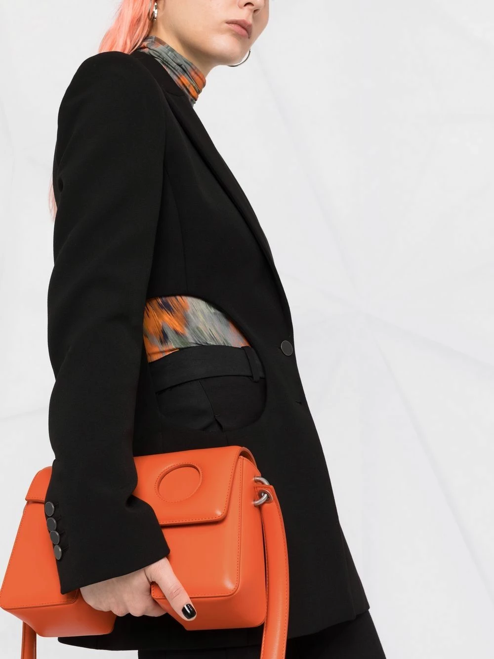 Brimming with eye-catching appeal, Off-White’s Burrow crossbody bag is decorated with the label’s signature Meteor cut-out detailing. This iteration is produced in durable leather in a lively orange hue.
