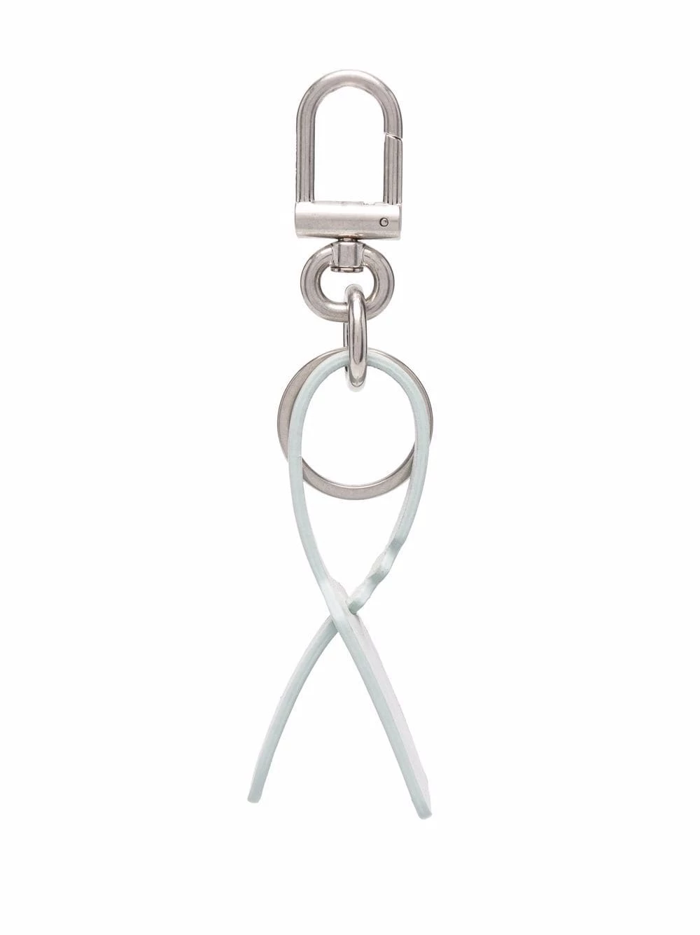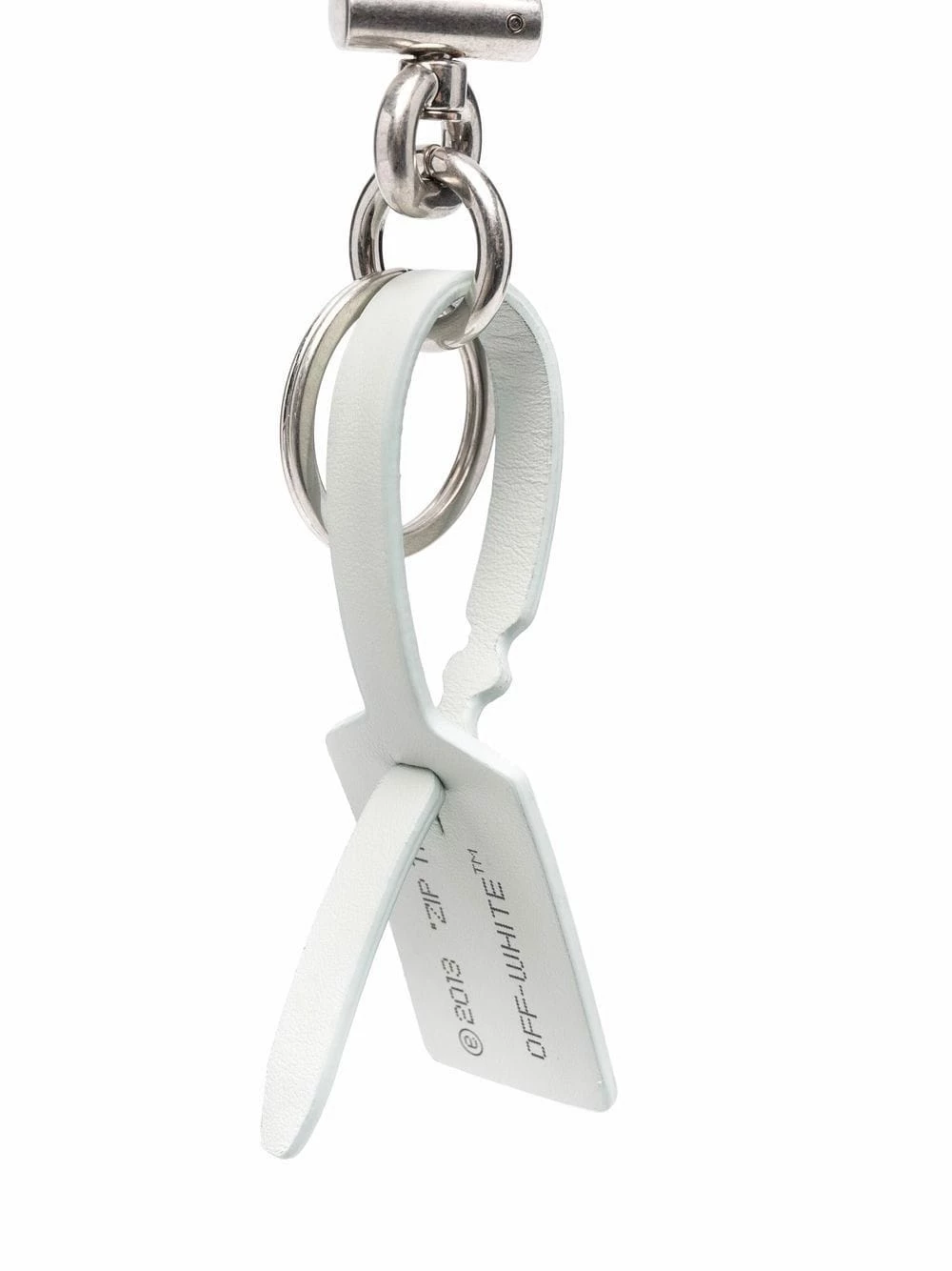 Off-White showcases its sleek side presenting this streamline luggage tag with shiny silver-tone ring and clip.