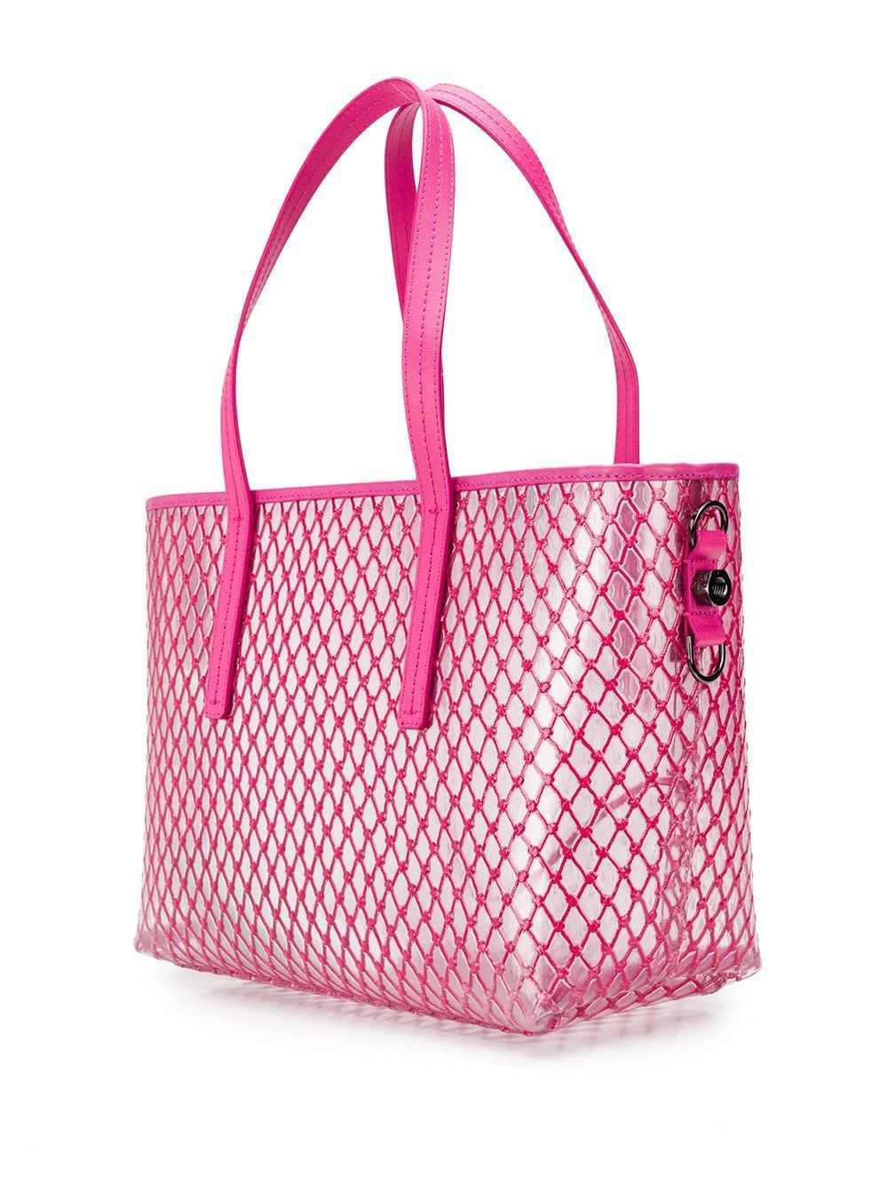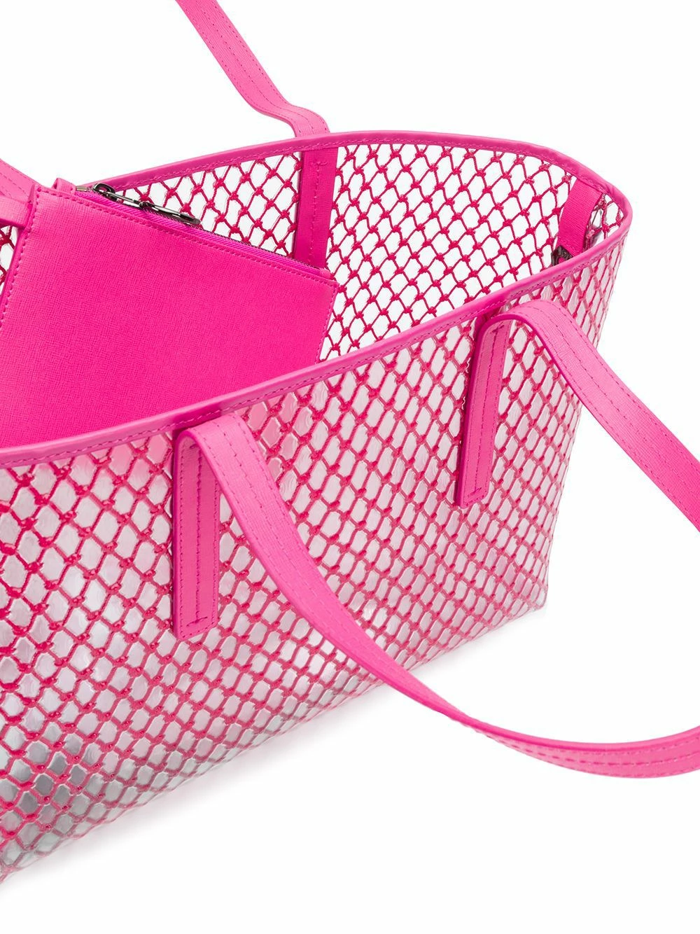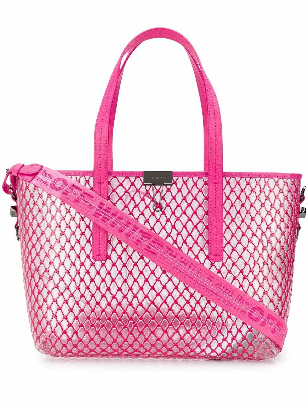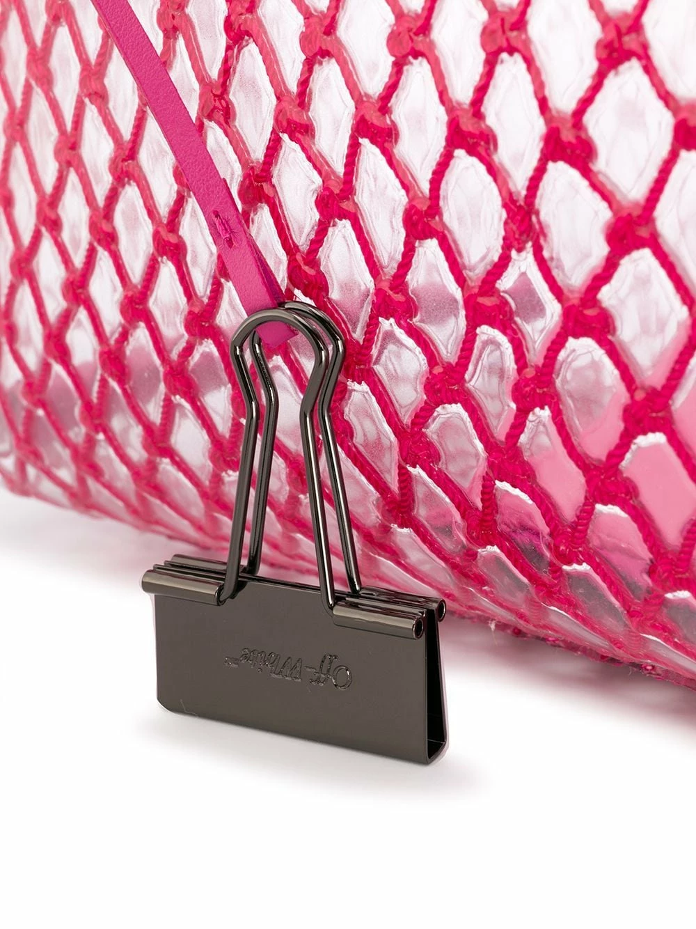 Founded in 2013 by DJ and fashion designer Virgil Abloh, the Milan based fashion label Off-White was conceived to link the gap between streetwear and high fashion. Inspired by the youth culture and with a distinctive aesthetic, Virgil Abloh creates designs with a cult following. Presented in a vibrant fuchsia tone, this netted shopper bag from Off-White boasts a sheer construction, round top handles, a detachable and adjustable shoulder strap, a detachable pouch pocket and a binder clip detail.