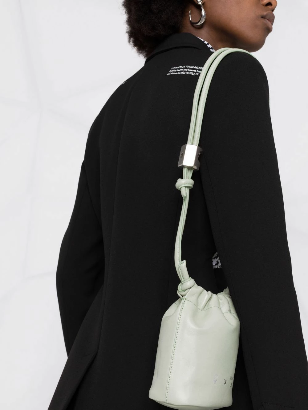 Off-White’s Slider silhouette appears in bucket shape here, creating a piece that blends contemporary style with a spacious main compartment. Adding further function, this piece also boasts an internal card slot and a printed logo to the front, that offers instant recognition.ย