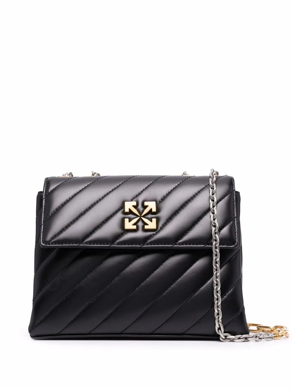 Blending Off-Whiteโs sense of modernity with a classic feel, the Jackhammer 22 shoulder bag proves itself a versatile staple. Presented in a black hue, this leather-made design has been accented with a gold-hued Arrow plaque to the front, celebrating one of the labelโs most famed motifs.