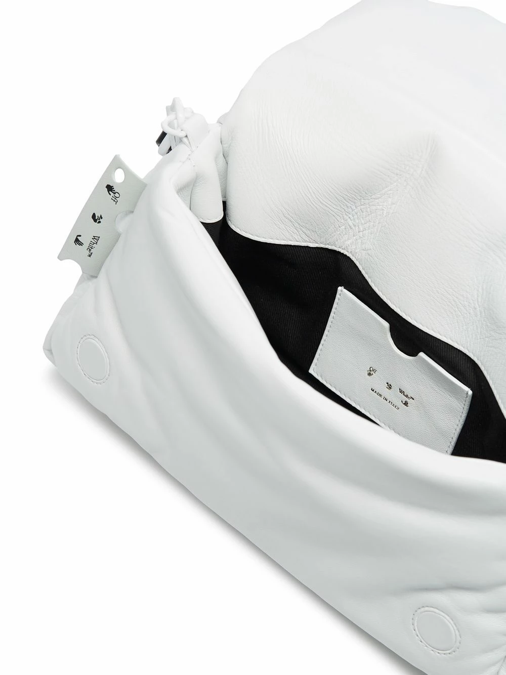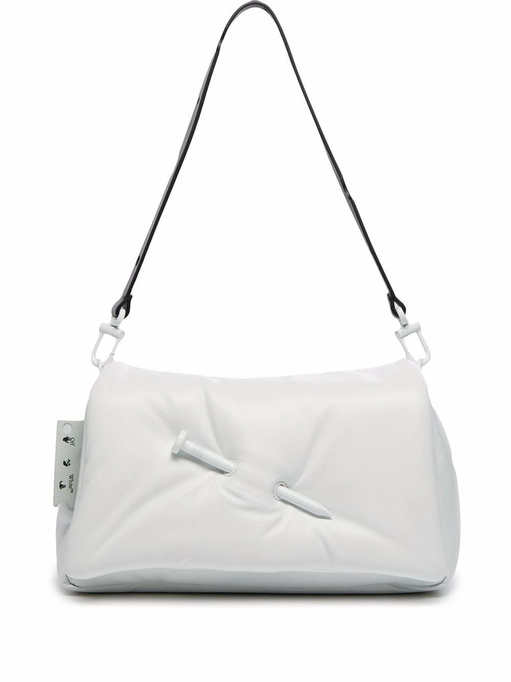 Playing to the brand’s playful approach to industrial codes, the Nailed Slouchy clutch bag from Off-White features a signature nail embellishment on the front. This white accessory comes with a detachable shoulder strap for alternative carrying options.