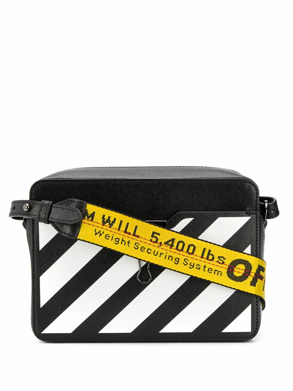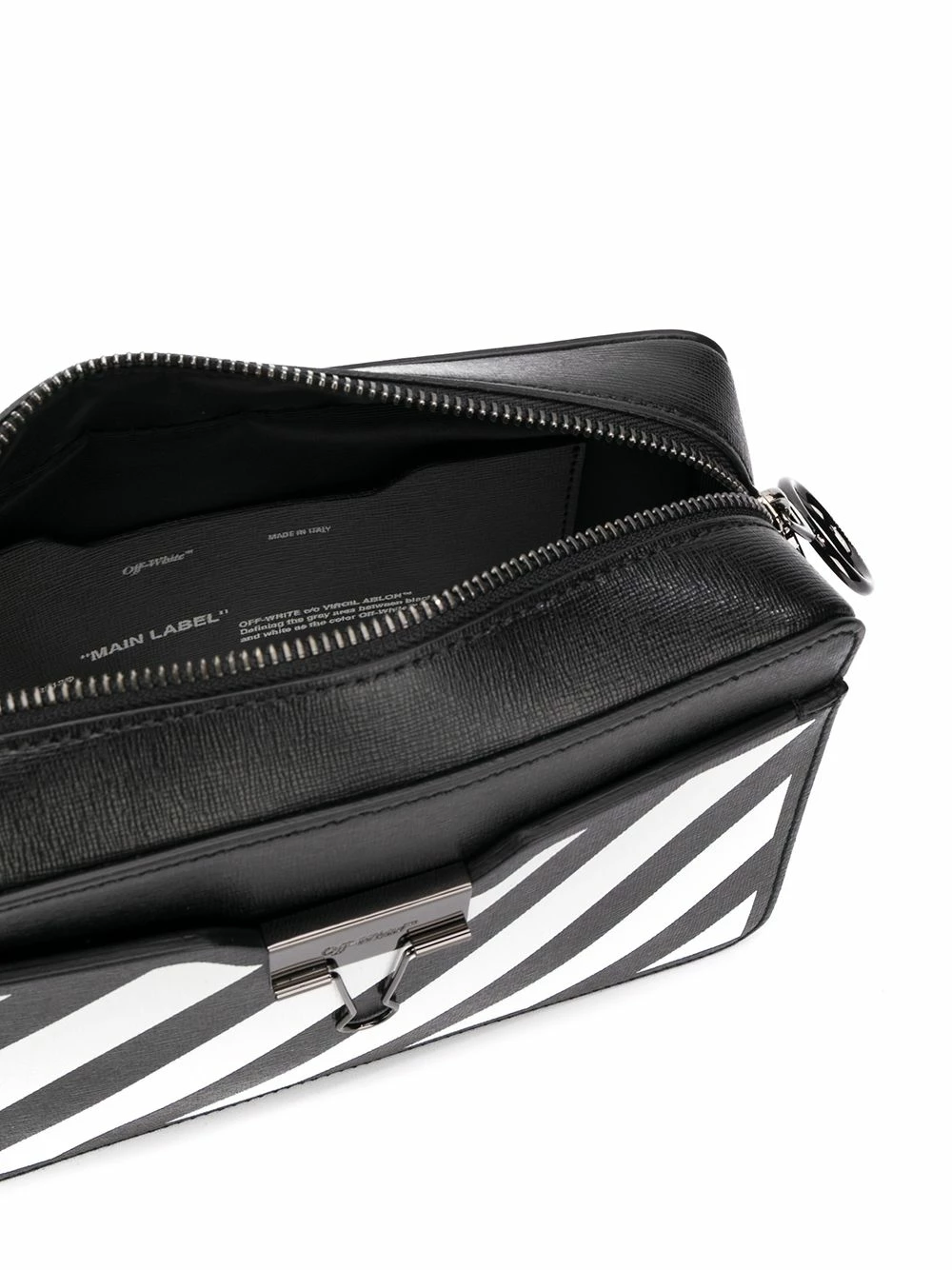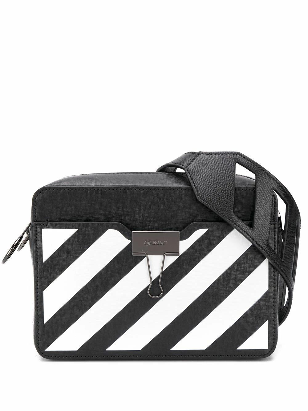 Are you an Instagram queen? Carry your camera in style with this striped piece. Make a statement and get the likes rolling in. Featuring a striped pattern, a top zip fastening, a detachable and adjustable shoulder strap, a clip detail and text details.