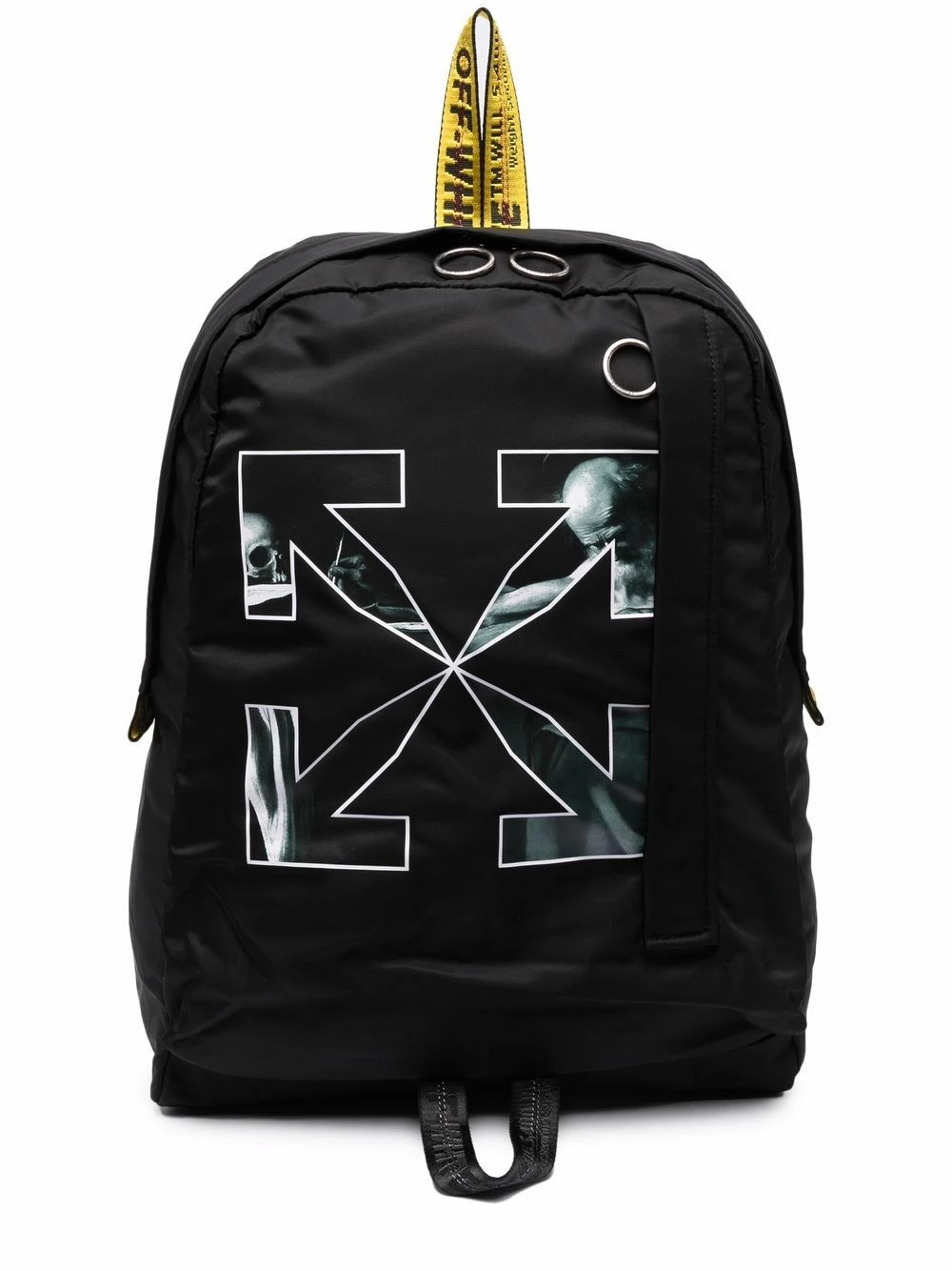 Reinvented with a Renaissance-inspired edge, Off-Whiteās Arrow motif appears to the front of this backpack. Boasting a Caravaggio print – a common theme in the brandās collection – this piece merges modernity and tradition into one.
