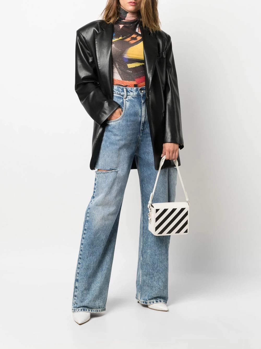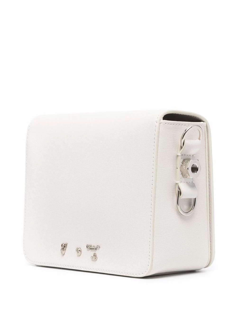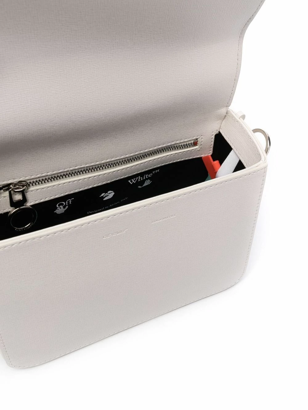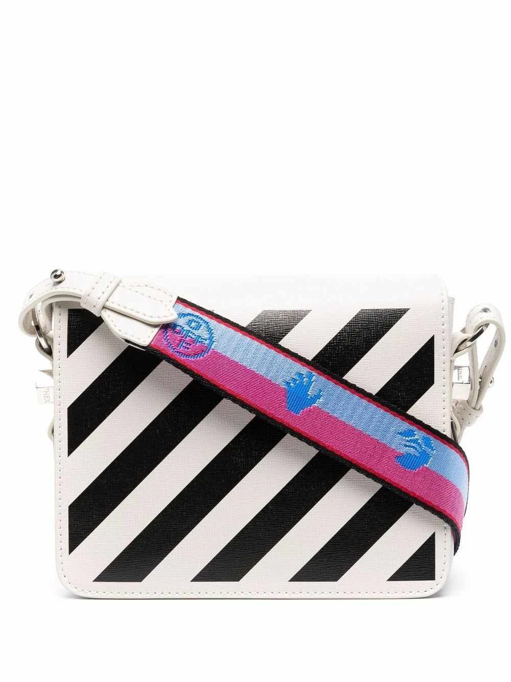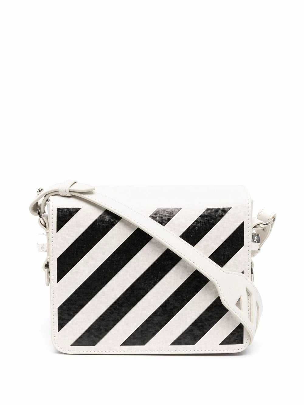 Featuring one of the key design motifs of Off-White, diagonal stripes across the front of this shoulder bag make it instantly recognisable. In a minimal two-tone colourway, with industrial-inspired silver-tone hardware detailing which fits into current streetwear trends, the brand’s concept of ’embracing the now in a sophisticated manner’ is showcased.