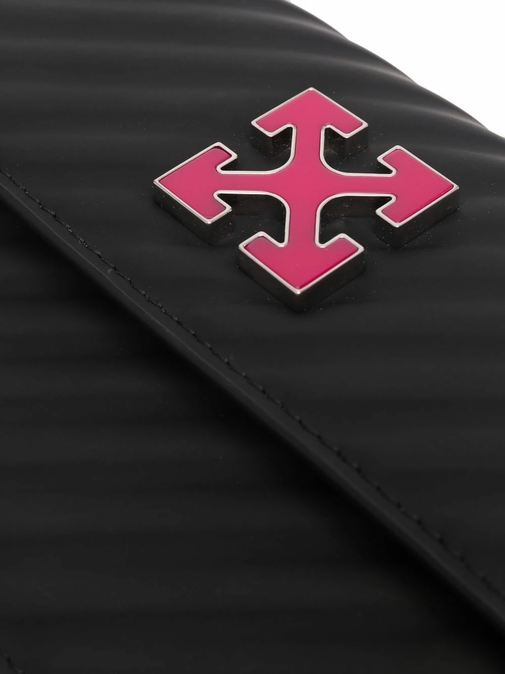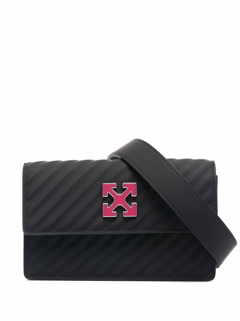 Embossed with a diagonal stripe pattern, Off-White’s belt bag is produced in a tonal leather design. A pink-hued Arrows plaque adorns the front of the design for a branded completion.ย