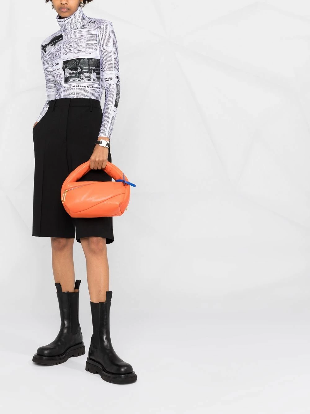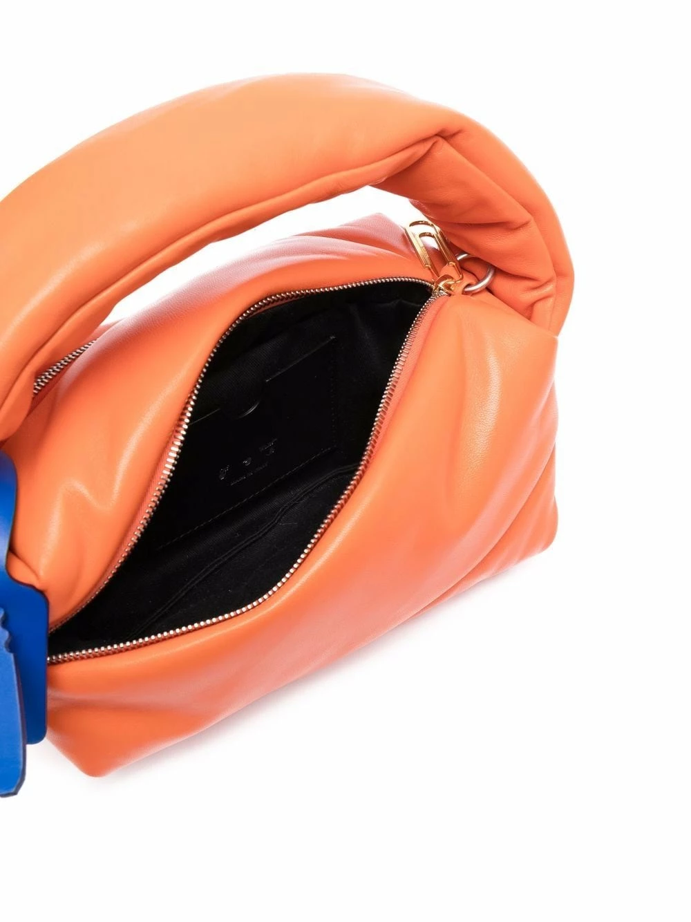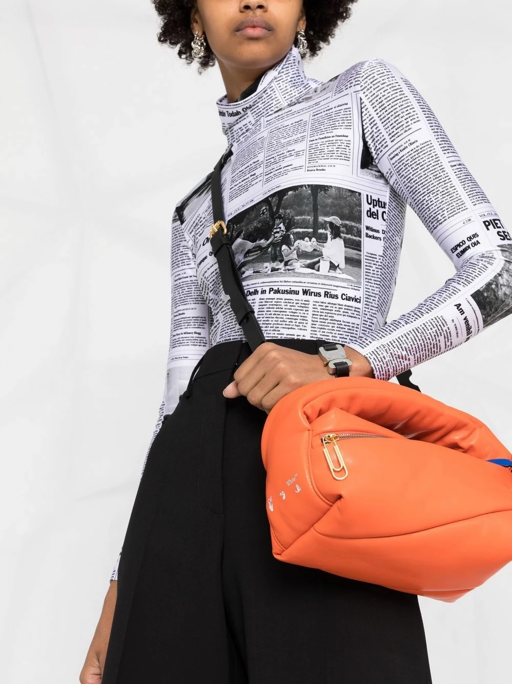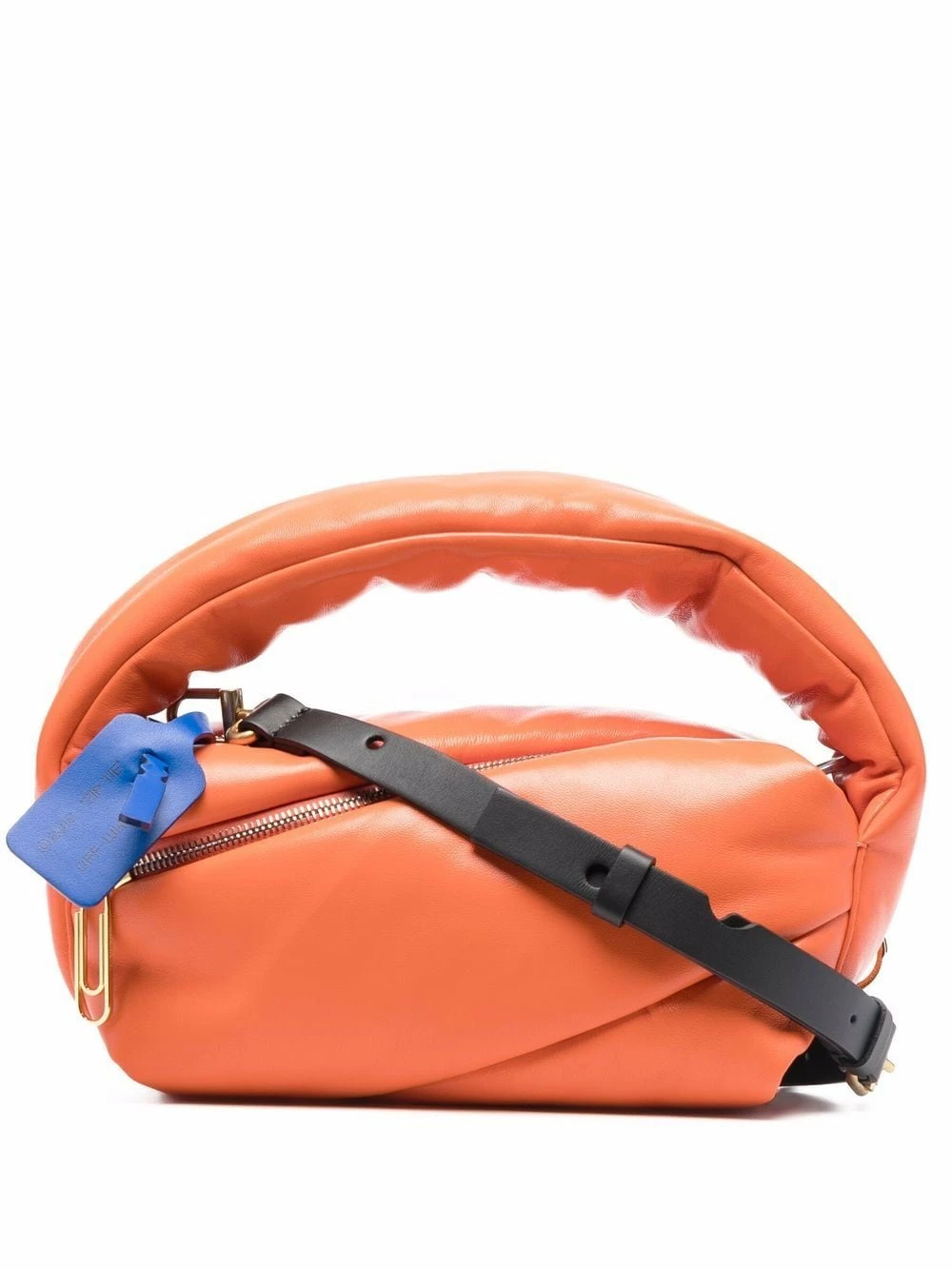 Off-White’s latest handbag silhouette takes the form of the Pump Pouch, an orange leather tote constructed in a padded design. With a quilted finish, this practical and eye-catching accessory boasts some of the brand’s most iconic motifs, like a signature safety tag and paperclip detail. Fastening at the front with a diagonal zip fastening, it features a detachable strap that allows it to be worn crossbody-style, on the shoulder or handheld.