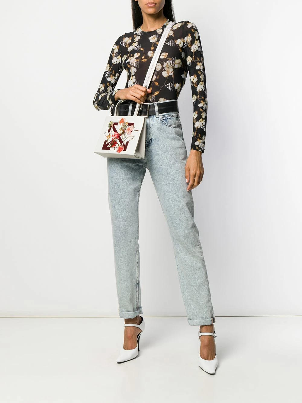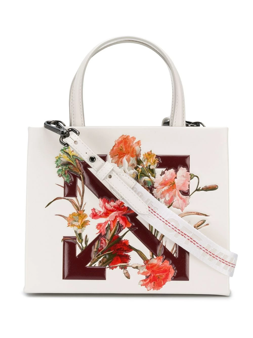 Virgil Abloh adds a feminine touch to this white tote bag from Off-White, which is updated with a floral addition to the Diagonal Arrows logo. The bag features top handles, a detachable shoulder strap and a main internal compartment for all of your essentials.