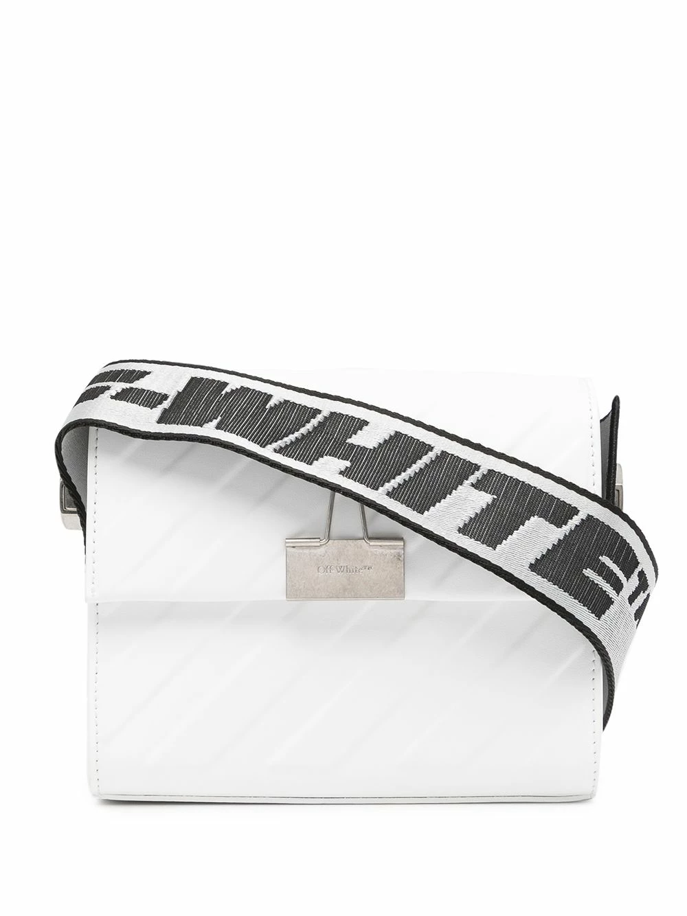 Off-White combines two key motifs on this shoulder bag, creating an instantly recognisable look. The brand’s iconic Diag stripe is featured as a tonal embossed design, whilst the Binder Clip takes the focus at the front.