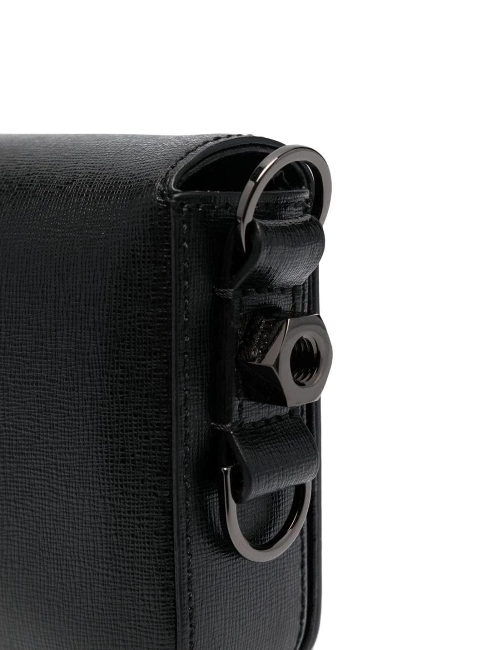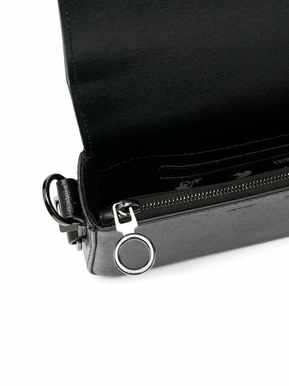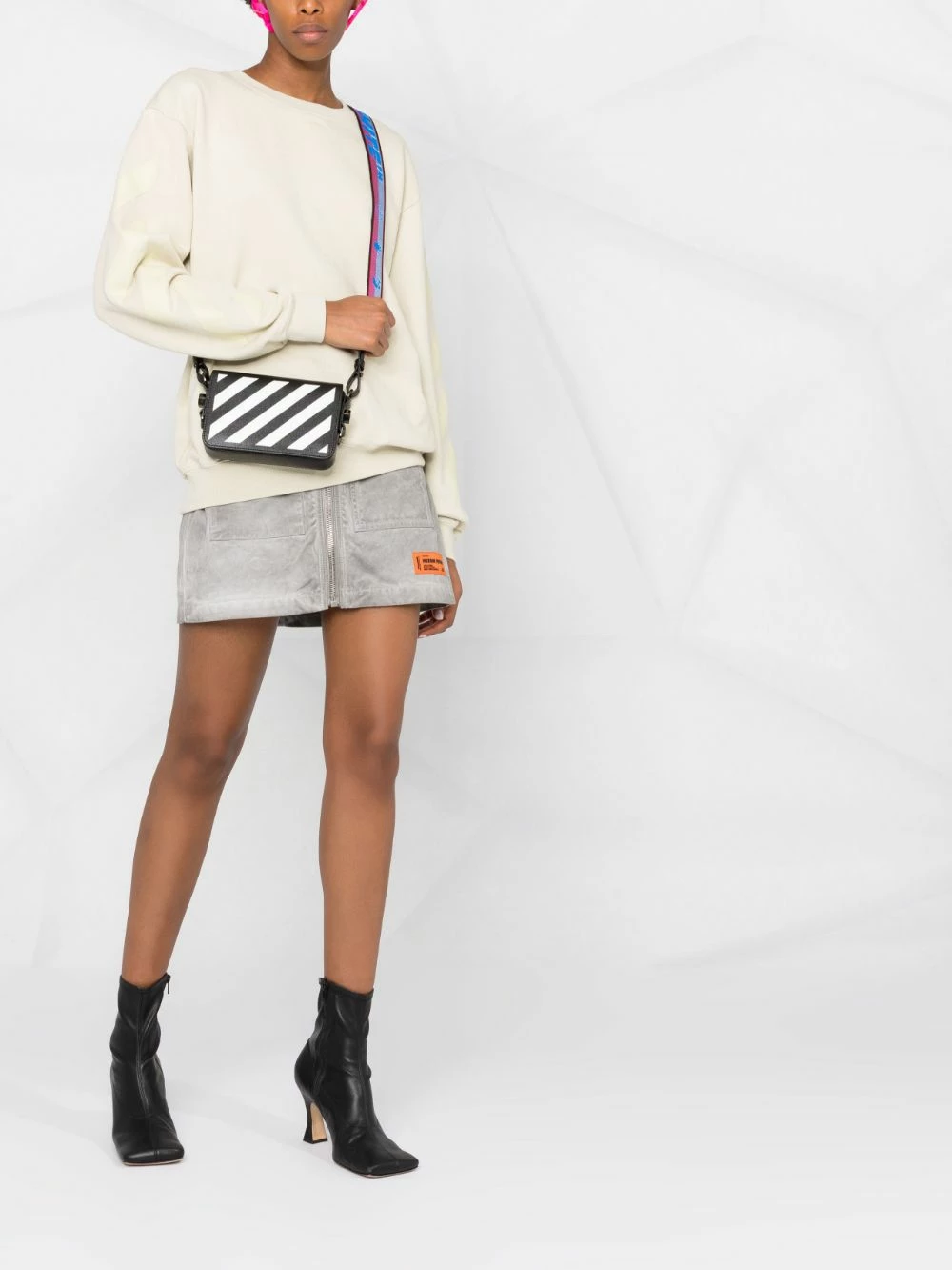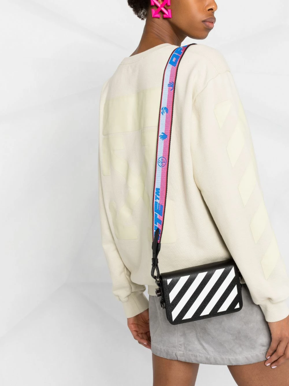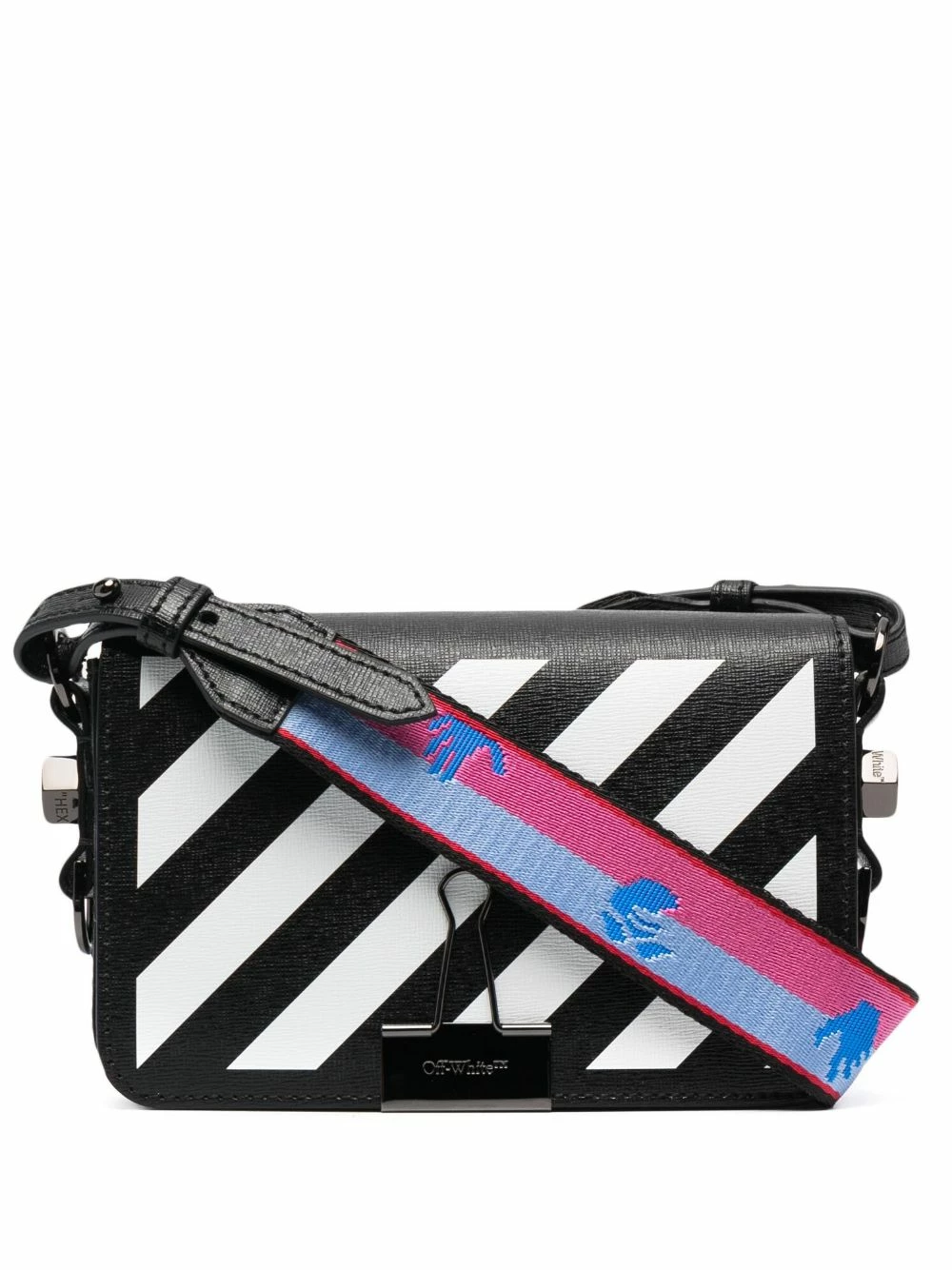 Featuring one of the key design motifs of Off-White, diagonal stripes across the front of this shoulder bag make it instantly recognisable. In a minimal two-tone colourway, with industrial-inspired silver-tone hardware detailing which fits into current streetwear trends, the brand’s concept of ’embracing the now in a sophisticated manner’ is showcased.ย