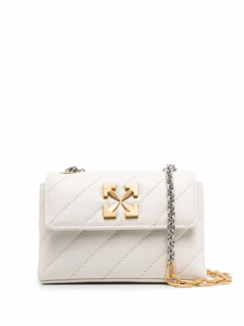 For AW21, Off-White presents this new iteration of the Jackhammer 17 bag. Presented in a white hue, this quilted design is detailed with a gold-toned Arrow plaque to the front, one of the labelโs most identifiable motifs.