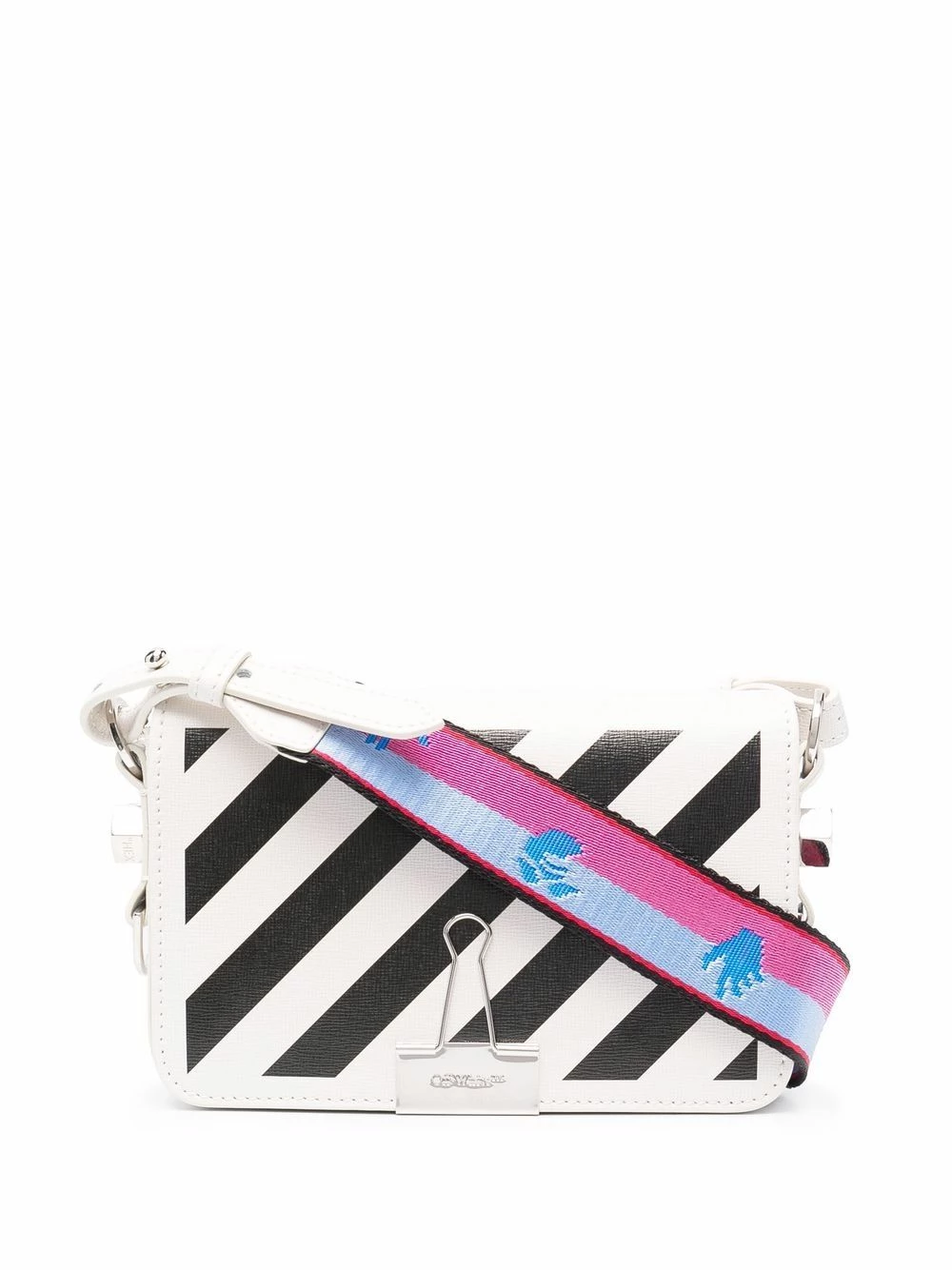 Featuring one of the key design motifs of Off-White, diagonal stripes across the front of this shoulder bag make it instantly recognisable. In a minimal two-tone colourway, this bag features industrial details including a silver-tone Binder Clip.ย