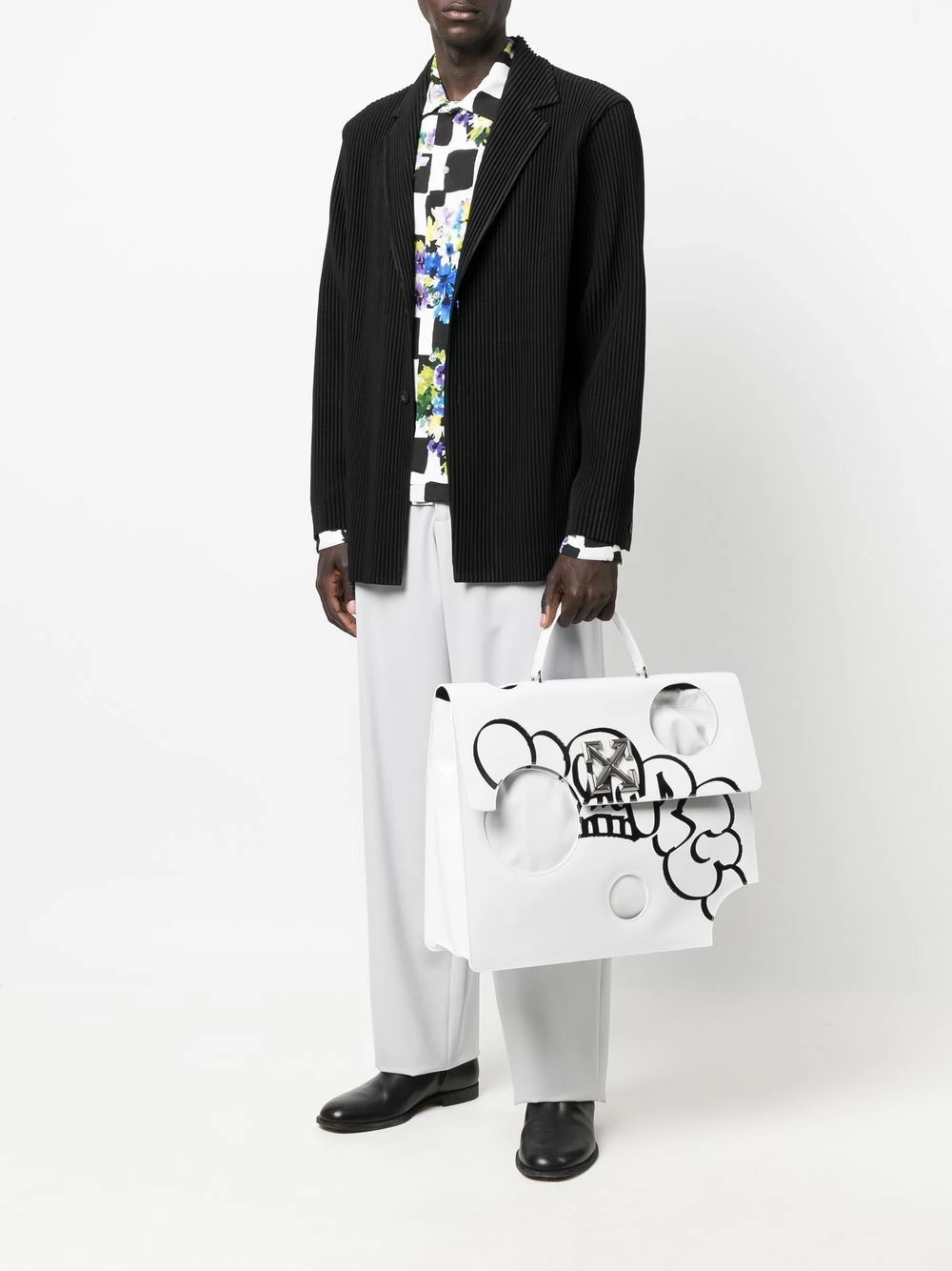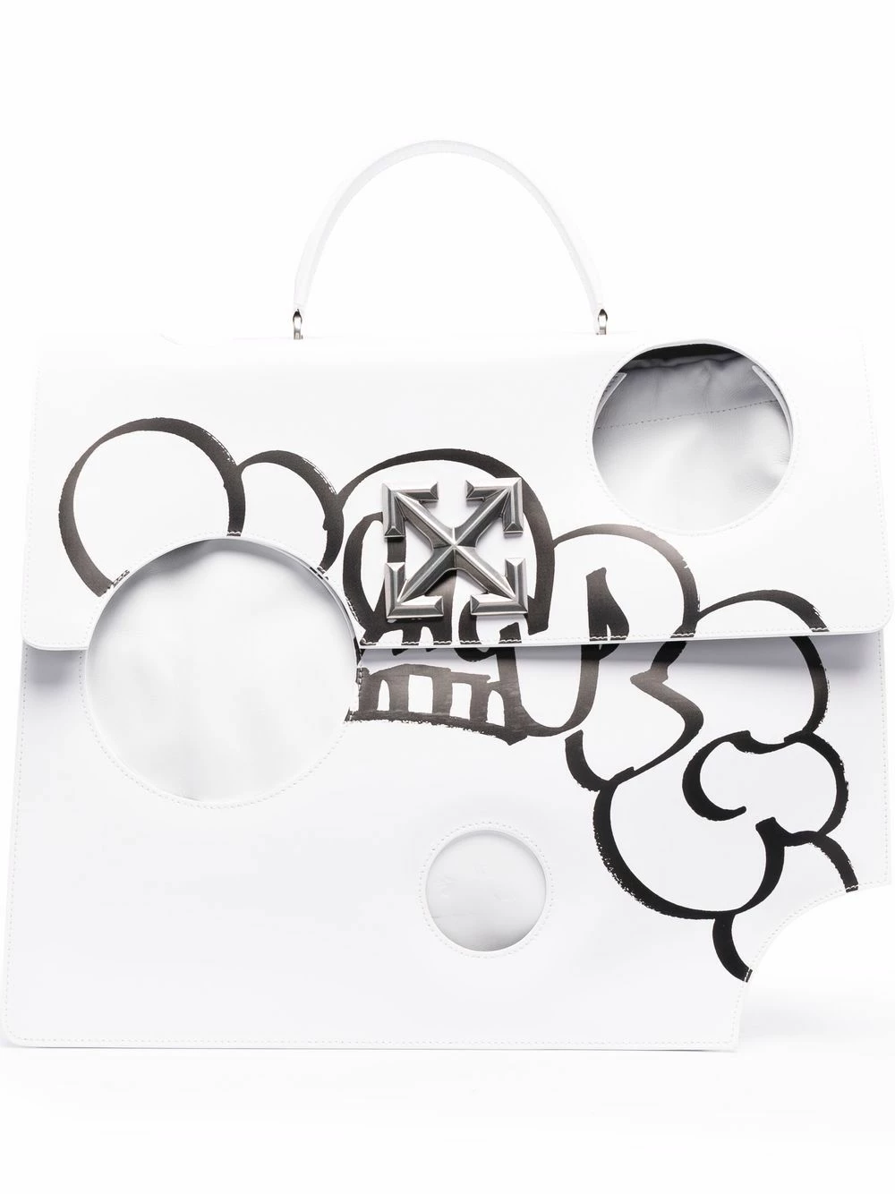 Result of a collaboration between Off-White and Katsu, this white tote bag showcases a graffiti print on the front, which is a signature of the New York-based artist.