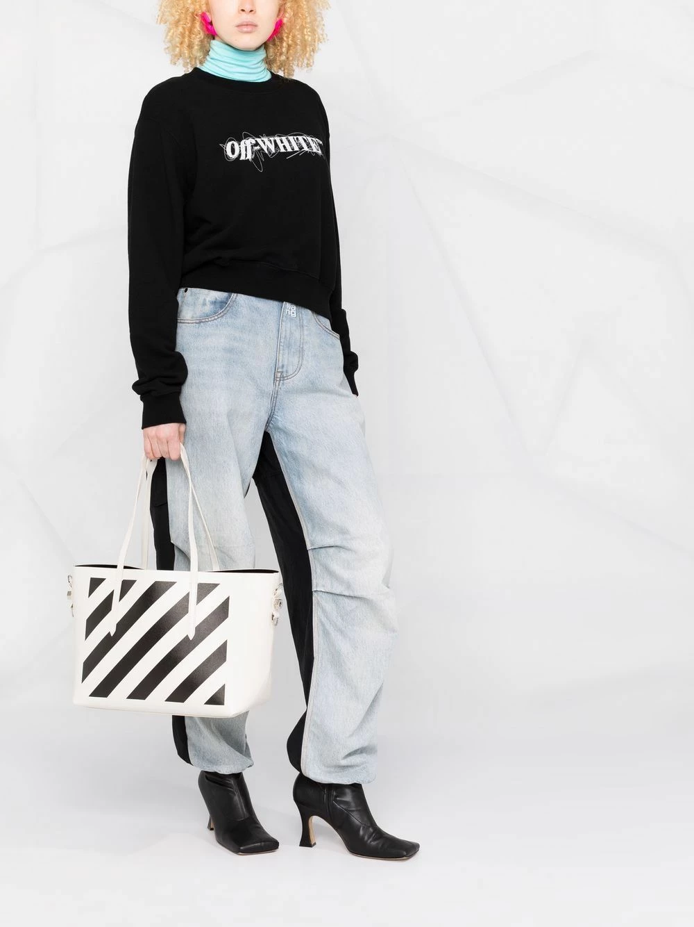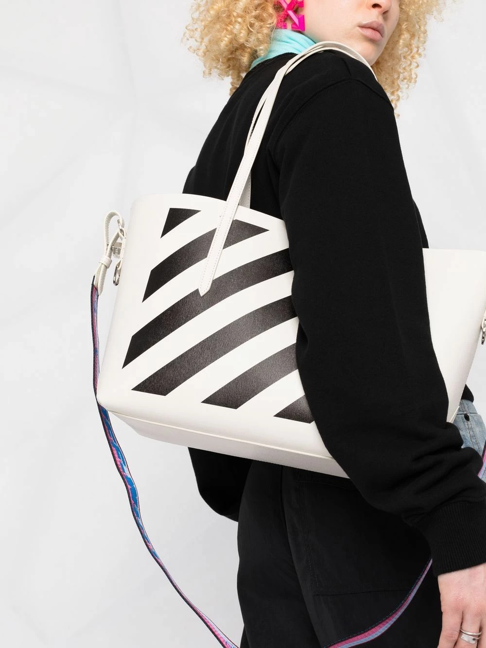 OFF-WHITE brings an industrial feel to each collection. Crafted from leather, this Diag shopper tote bag is designed with contrasting a diagonal stripe print to the front and a signature industrial-inspired shoulder strap.